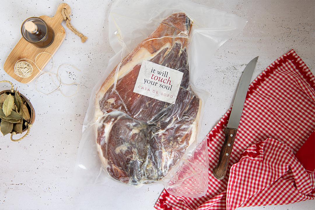 Casa de Soto hams are known for their lean, flavorful meat and high marbling or intramuscular fat which gives the ham its soft, juicy texture and balanced, intense flavor
